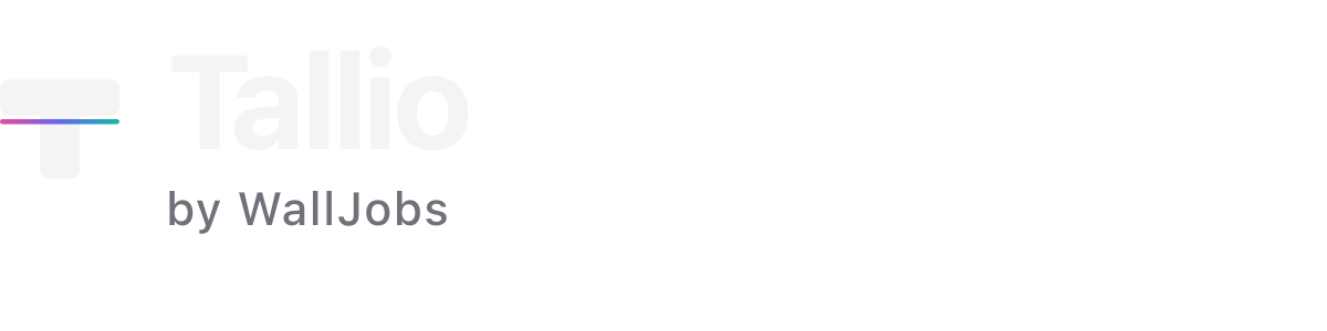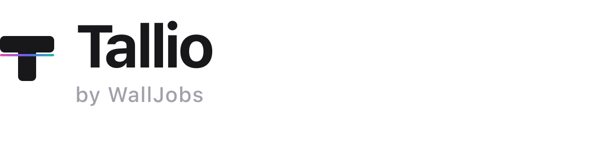 The logomark paired with the Tallio name. Always include the “by WallJobs” endorsement.